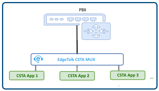 Panasonic PBX systems allow only one concurrent CSTA connection. EdgeTalk CSTA Multiplexer can be used to allow multiple CSTA Applications at the same time. Multiple third party applications can interface with the EdgeTalk CSTA Mux to talk with the Panasonic PBX concurrently.